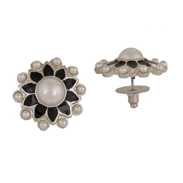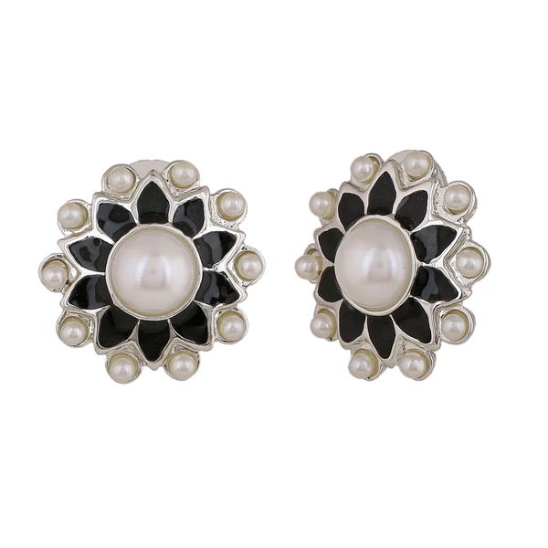 Be the first to review “Estele Rhodium Plated Elegant Meenakari Pearl Stud Earrings with Black Enamel for Women” Cancel reply